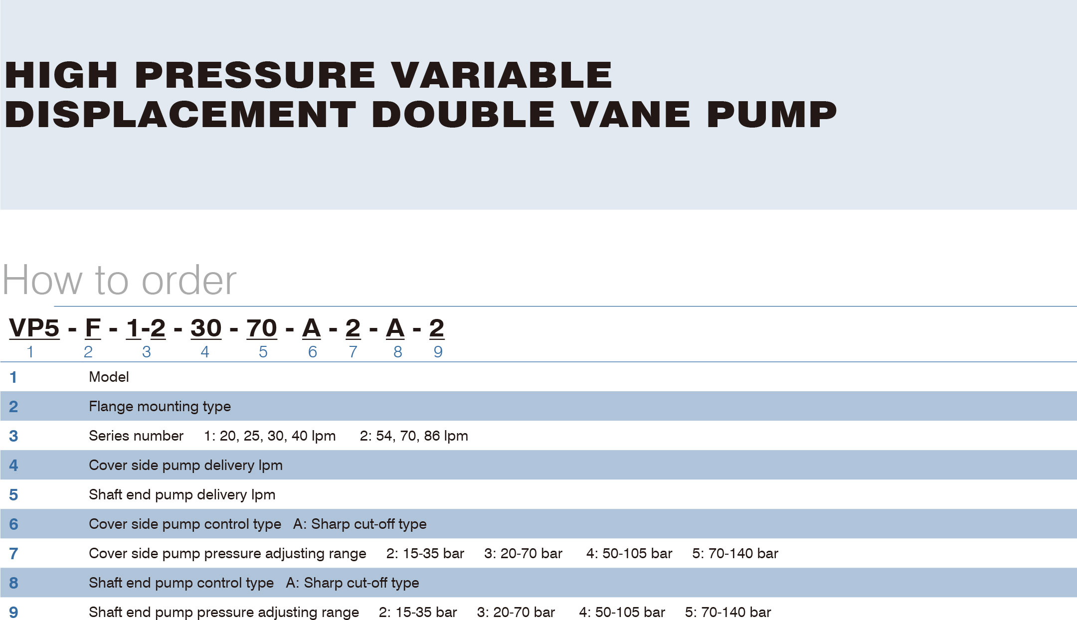 High pressure variable displacement double vane pu